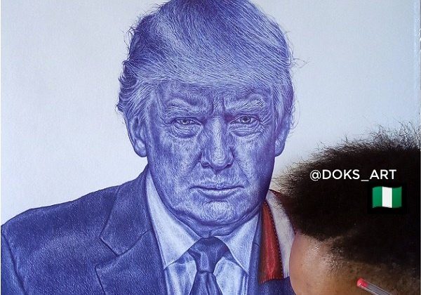 US president, Donald Trump has commended Oyedele Isaac, a Nigerian ballpoint artist, for making a portrait of him purely out of a blue and red pen. ... -